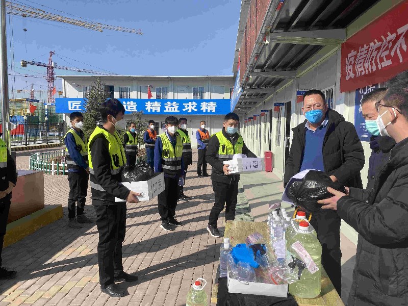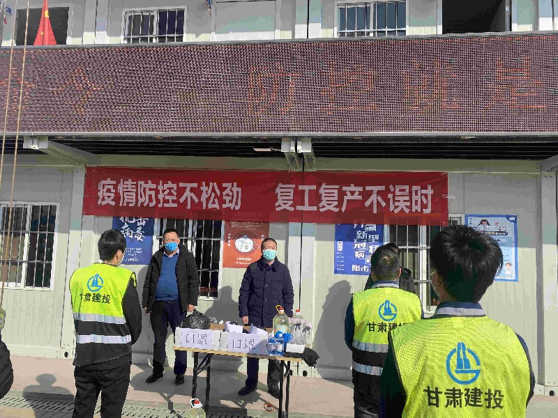 為了進一步做好疫情防控工作,2月28日下午,建設二公司支部、行政、工會等組織的負責人一行,來到蘭州新區瑞嶺錦繡項目檢查指導疫情防控工作并為項目一線的管理人員送去口罩、醫用酒精及消毒液等防疫物資。