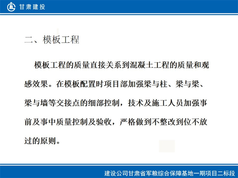 該工程位于甘肅省蘭州市榆中縣和平工業(yè)園區(qū)臥龍川產(chǎn)業(yè)園區(qū)內(nèi), 包括低溫成品庫、大米雜糧加工車間、一站式服務中心及標準化車間等6棟新建單體建筑。工程質(zhì)量管理目標為:按照國家頒布的最新施工質(zhì)量驗收規(guī)范執(zhí)行,達到國家驗收“合格”標準,爭創(chuàng) “飛天獎”。項目工期緊、任務重,在施工工期、施工工序上有嚴格的要求,為保證人材機相互協(xié)作,公司選優(yōu)配強項目管理班子,項目部做好事前策劃,施工中加強整體調(diào)控,圓滿完成質(zhì)量及工期要求。項目管理團隊在過程中嚴把工程質(zhì)量,管控施工安全,優(yōu)化施工方案,采用新工藝、新技術、新規(guī)范,在施工中嚴格執(zhí)行安全生產(chǎn)和質(zhì)量標準化管理要求,認真落實“樣板引路”,以樣板指導施工。