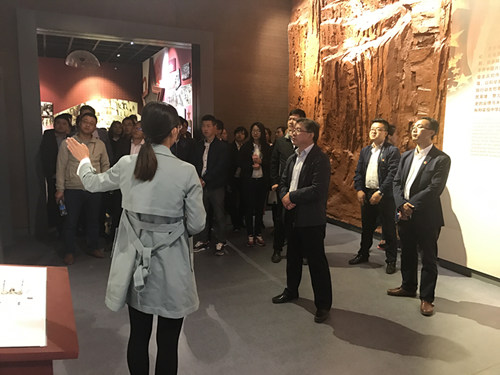 儀式結束,全體成員在紀念碑前合影留念,大家在講解員的引導下,參觀了《紅星照耀中國——外國記者眼中的中國共產黨人》圖片展館,該展館從探尋紅色中國、鏡頭里的中國革命、偉人風采、人民軍隊、群眾武裝、延安生活,視頻播放、版畫介紹等八個方面,展示了外國記者在革命歷史年代留下的真實著作和照片等歷史資料,一張張照片、一件件檔案、一幕幕場景,仿佛把全體團員帶回了那段難以忘懷的崢嶸歲月,大家紛紛表示,重溫歷史,就是要從中國共產黨團結和帶領中國人民進行英勇頑強斗爭的這段非凡歷程中得到深刻啟示,從而更加堅定永遠跟黨走的理想與信念,沿著革命前輩的光輝足跡,接力前行。