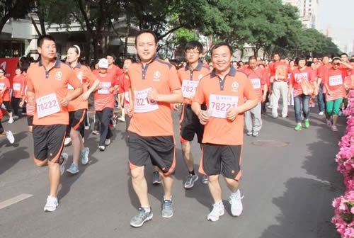 6點鐘,甘肅建投職工早已排成整齊的隊列在指定位置各就各位,隨著航拍飛機一次次在中心廣場上空盤旋,甘肅建投職工的歡呼聲響徹天地。專業運動員率先開跑之后,甘肅建投代表隊處于眾多的方陣中的第二方陣,425名從集團所屬各單位抽調的職工身穿印有“甘肅建投”字樣的運動服裝,30人一排,邁著強有力的步伐,進行5公里迷你馬拉松的比賽,全體運動員互相幫助、互相扶持、互相激勵,順利完成了賽程,到達終點,體現了甘肅建投的團隊精神。