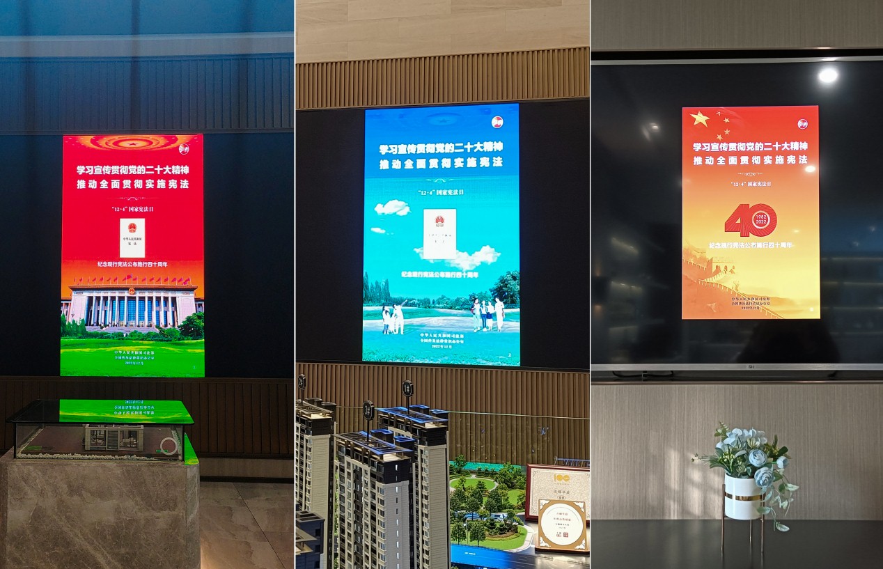 “憲”聲奪人,掀起宣傳熱潮。2022年是中國現行憲法公布施行四十周年,12月4日是第九個國家憲法日,本周為第五個憲法宣傳周。此次,在憲法宣傳周來臨之際,甘肅建投各出資企業發放憲法宣傳資料、懸掛憲法宣傳標語、制作海報展板、憲法宣傳展架,利用宣傳欄、電子屏等陣地在公司及車間廠房、項目一線播放憲法宣傳微視頻、公益廣告,通過微信公眾號、網站、QQ等多次發布憲法學習的相關材料,營造了十分濃厚的憲法宣傳氛圍。