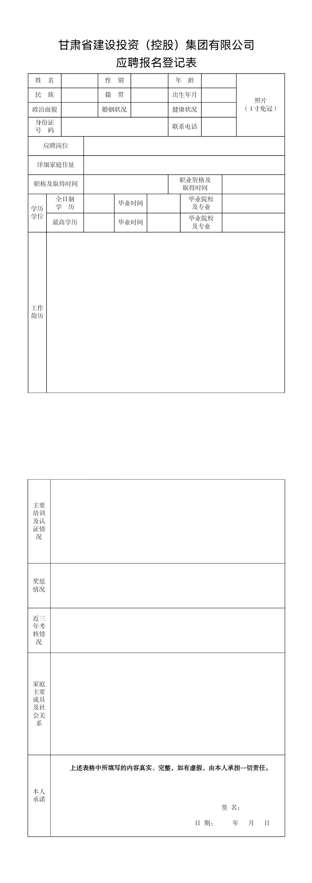 附件2.甘肅省建設投資(控股)集團有限公司應聘報名登記表