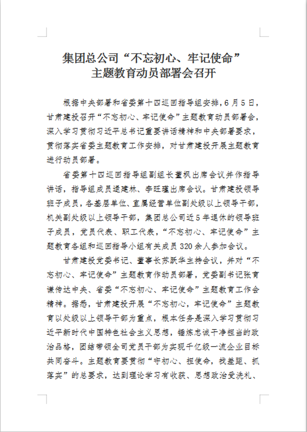 【不忘初心 牢記使命】集團總公司“不忘初心、牢記使命” 主題教育動員部署會召開